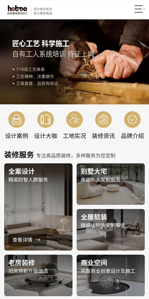 胡桃善锦设计专注于居住空间设计研究的原创设计品牌,每一个设计,都是匠心专属定制!以设计领衔施工,坚持新工艺的不断研发和实景更好的落地。